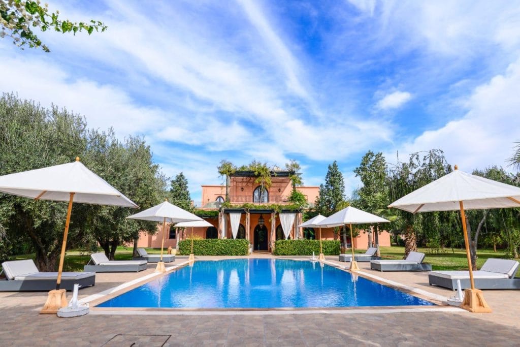 Située à 12 km de Marrakech, sur la Route de Fès, cette somptueuse villa est parfaite pour un séjour en famille, offrant un cadre spacieux et luxueux, alliant confort et tranquillité.